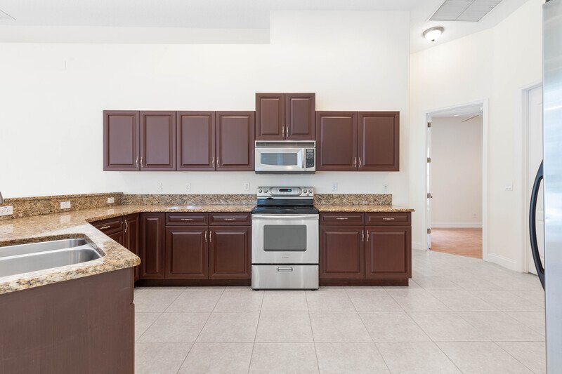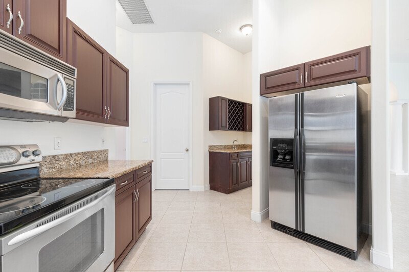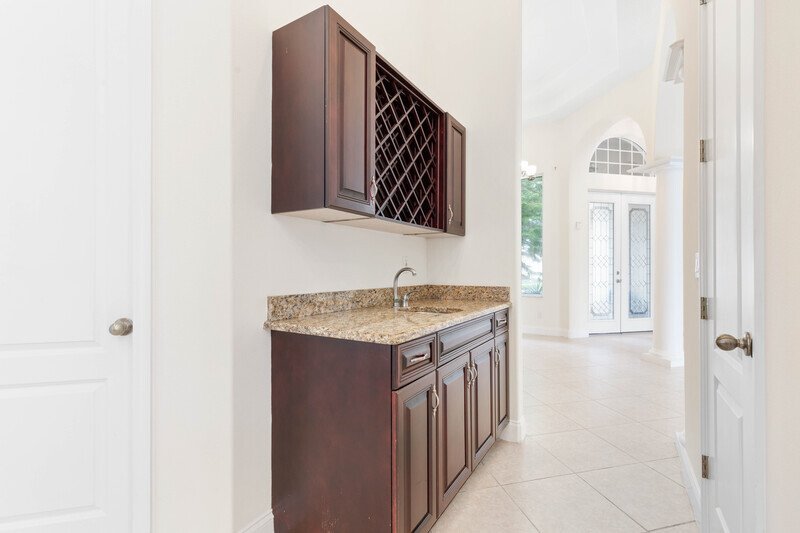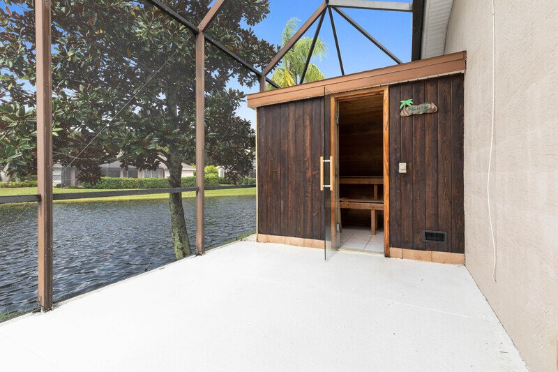 THIS SPACIOUS, LAKEFRONT POOL HOME FEATURES ALL TILE AND WOOD FLOORING THROUGHOUT... COVERED PORCH, SAUNA, SCREENED IN POOL AND SPA WITH LAKE VIEW... SPACIOUS KITCHEN WITH STAINLESS STEEL APPLIANCES, GRANITE COUNTERTOPS, UPGRADED CABINETRY, WINE STORAGE, RAISED COUNTER BAR AND BREAKFAST NOOK... SPLIT BEDROOM PLAN, LARGE MASTER SUITE OFFERS OVERSIZED DOUBLE SINK VANITY, LARGE ROMAN RUB, WALK-IN SHOWER AND HUGE WALK-IN CLOSET... FOYER, FORMAL LIVING ROOM, AND FAMILY ROOM WITH ENTERTAINMENT CENTER ALCOVE... COVERED/SCREENED IN PORCH WITH POOL, SPA, BATHROOM ACCESS, AND SAUNA... 2 CAR GARAGE WITH ELECTRIC OPENER.