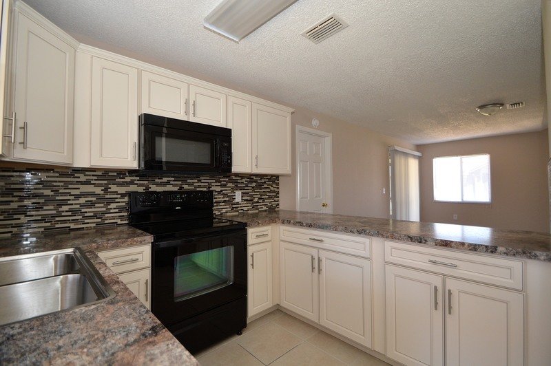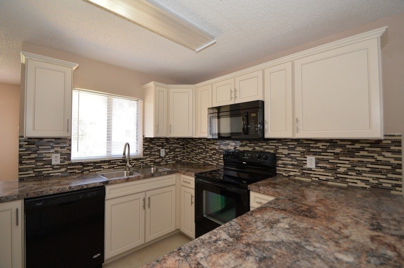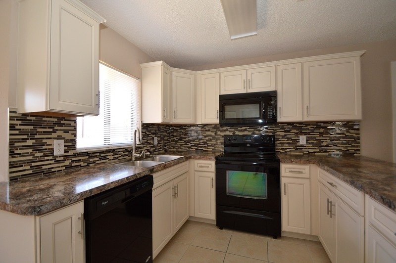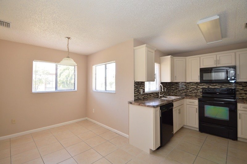 THIS SPACIOUS 3 BEDROOM, 2 BATHROOM HOME FEATURES TILE AND WOOD FLOORING THROUGHOUT, KITCHEN WITH UPGRADED BLACK APPLIANCES, TILE BACK SPLASH, COUNTER BAR AND BREAKFAST NOOK... SPLIT BEDROOM PLAN, SPACIOUS MASTER SUITE OFFERS WALK-IN CLOSET AND DOUBLE SINK VANITY... LARGE LIVING/DINING ROOM COMBO WITH SLIDING GLASS DOOR LEADING TO THE COVERED/SCREENED PORCH AND PARK-LIKE BACK YARD.
