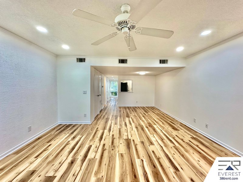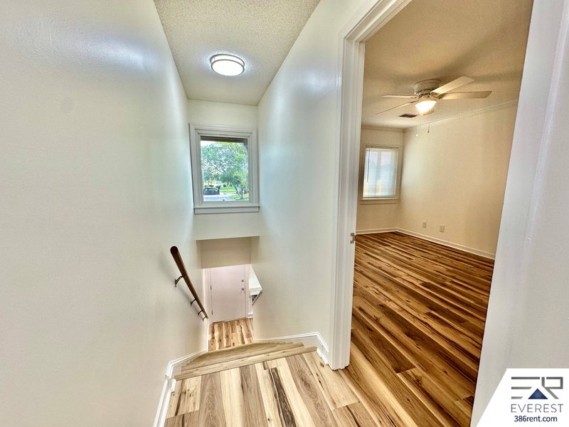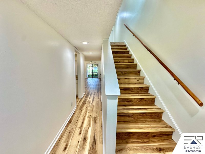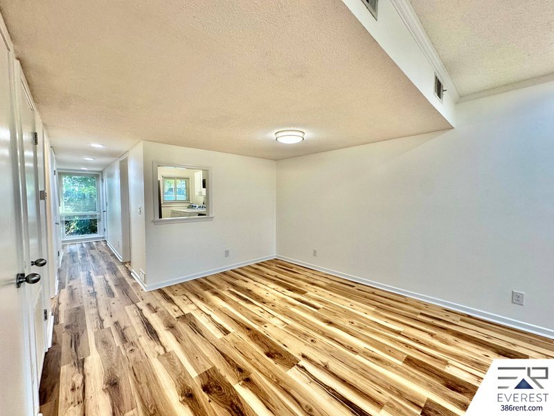 THE FIRST FLOOR WELCOMES YOU WITH SLEEK TILE FLOORING, A SPACIOUS LIVING AND DINING AREA, AND A SEAMLESS FLOW TO THE SERENE BACK PORCH—IDEAL FOR MORNING COFFEE OR EVENING RELAXATION. UPSTAIRS, RICH WOOD FLOORING LEADS TO TWO GENEROUS BEDROOMS, A FULL BATH, AND A BALCONY OFFERING PEACEFUL VISTAS. WATER AND CABLE ARE INCLUDED FOR ADDED CONVENIENCE. WASHER AND DRYER INCLUDED. HOME OFFERS 1,127 SQ FT.