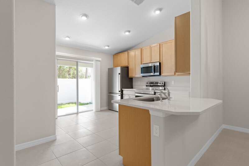 THIS FULLY FENCED, LIKE-NEW 3/2/1 TOWN HOME FEATURES ALL TILE FLOORING THROUGHOUT... KITCHEN WITH STAINLESS STEEL APPLIANCES, LUXURY QUARTZ COUNTER TOPS, COUNTER BAR, AND BREAKFAST NOOK... MASTER SUITE OFFERS A LARGE WALK-IN CLOSET AND A WALK-IN SHOWER... SPACIOUS LIVING/DINING ROOM COMBO WITH VAULTED CEILING... SLIDING GLASS DOOR LEADS TO THE COVERED PORCH AND PARKLIKE BACKYARD... 1 CAR ATTACHED GARAGE WITH ELECTRIC OPENER AND WASHER/DRYER HOOKUPS.